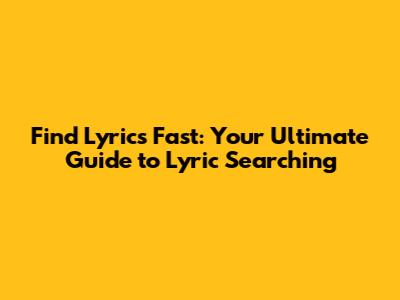 Find Lyrics Fast: Your Ultimate Guide To Lyric Searching