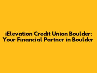 Hey everyone! Are you looking for a reliable financial partner right here in the beautiful city of Boulder? Look no further than iElevation Credit Union! This article is all about giving you the lowdown on why iElevation is a fantastic choice for all your banking needs. We'll dive into what makes them stand out, the services they offer, and why they might just be the perfect fit for you. So, let's get started, shall we?