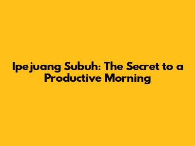 Ipejuang Subuh: The Secret To A Productive Morning