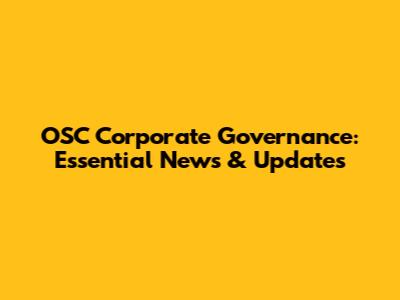 OSC Corporate Governance: Essential News & Updates