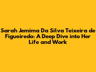 Now, let's explore the personal life and interests of Sarah Jemima Da Silva Teixeira de Figueiredo. Understanding her life outside of work can provide a more complete picture of who she is as an individual. What are her hobbies and interests outside of her professional life? Discovering her passions can reveal her diverse interests and activities. How does she spend her free time? Knowing her leisure activities can provide insights into her personality and preferences. Is she involved in any community organizations or volunteer work? Community involvement can demonstrate her commitment to giving back and making a difference. What are her personal values and beliefs? Understanding her values can provide insights into her ethical framework and motivations. How does she maintain a healthy work-life balance? Achieving balance can demonstrate her ability to manage multiple priorities and maintain well-being. What are her favorite books, movies, or types of music? Exploring her cultural preferences can reveal her tastes and interests. Does she enjoy traveling, and if so, what are some of her favorite destinations? Travel experiences can broaden horizons and shape perspectives. What are her favorite foods or cuisines? Food preferences can reflect her cultural background and personal tastes. How does she stay physically active and maintain her health? Health habits can demonstrate her commitment to well-being and longevity. What are her relationships like with family and friends? Interpersonal relationships can provide insights into her social skills and emotional intelligence. Ultimately, understanding Sarah Jemima's personal life and interests allows us to appreciate her as a well-rounded individual with diverse passions and commitments. Her life outside of work contributes to her overall well-being and provides a broader context for understanding her professional achievements. This exploration of her personal side humanizes her story and makes her accomplishments even more relatable.