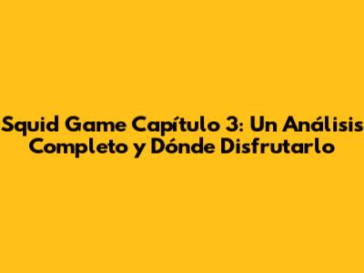 Squid Game Capítulo 3: Análisis Detallado Y Dónde Verlo