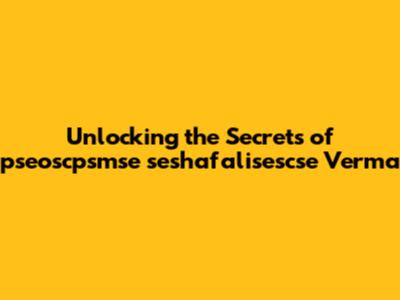 Unlocking The Secrets Of Pseoscpsmse Seshafalisescse Verma
