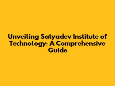 Unveiling Satyadev Institute Of Technology: A Comprehensive Guide
